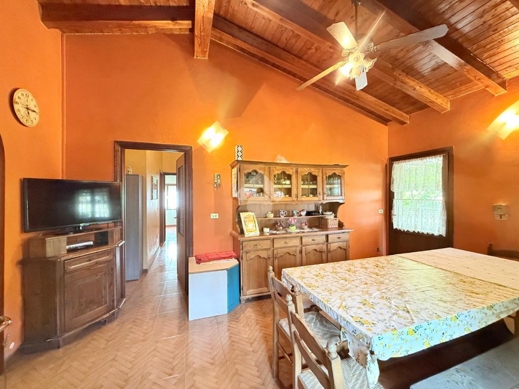 All’esterno, la villa è valorizzata da un grande portico privato che invita a trascorrere momenti all’aria aperta in ogni stagione, mentre al piano interrato trovano posto un ampio box doppio e una generosa cantina, perfetta come spazio di deposito o per ulteriori progetti. A completare la proprietà un terreno di circa 10.000 metri quadrati, arricchito da un orto privato e da uno chalet indipendente che regala una suggestiva vista panoramica sull’intera valle, creando un’atmosfera unica e riservata.