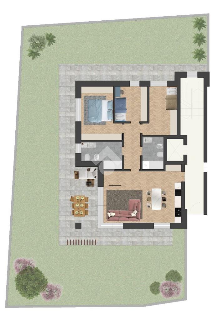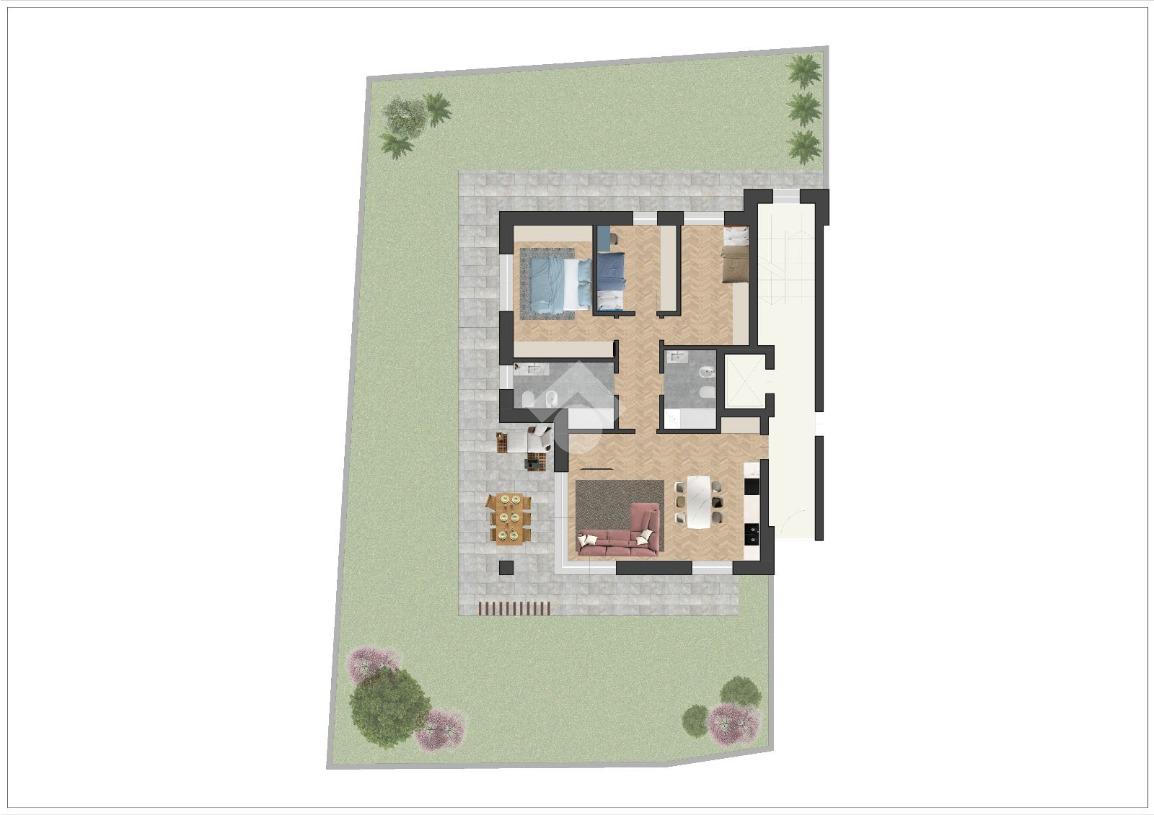 Tutti gli appartamenti sono dotati di ampi spazi esterni vivibili, con terrazze o giardini privati che regalano una suggestiva vista sui vigneti della Franciacorta, per vivere ogni giorno un'esperienza di tranquillità e bellezza.