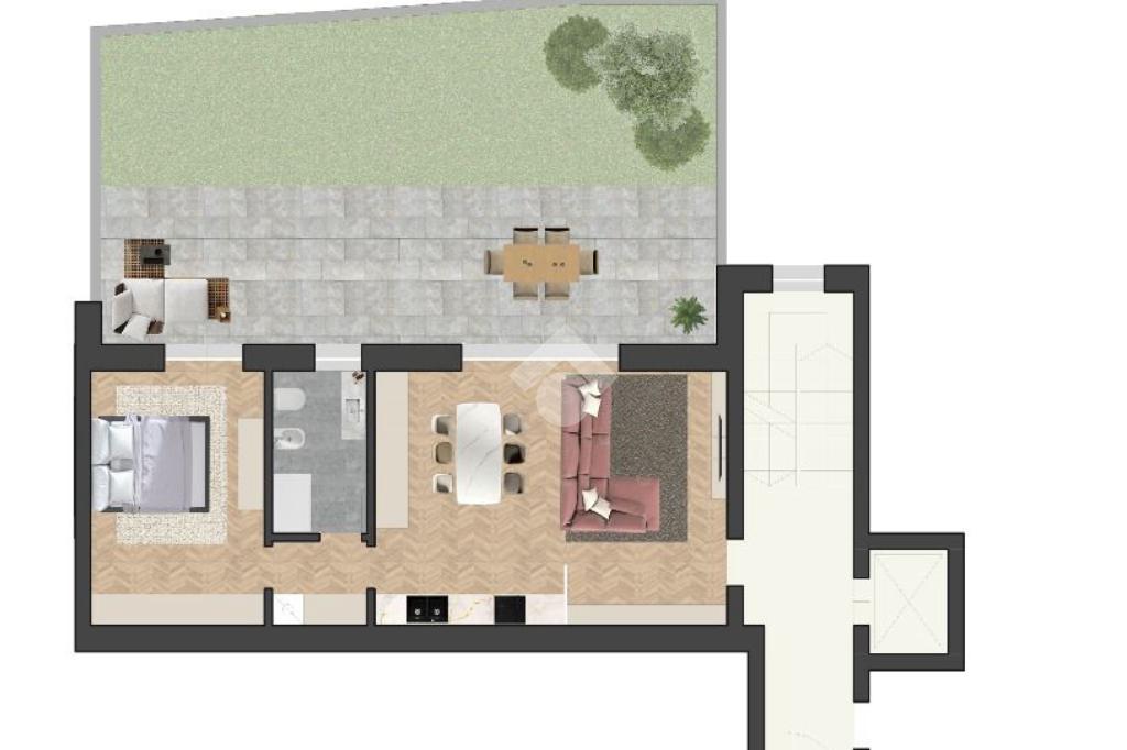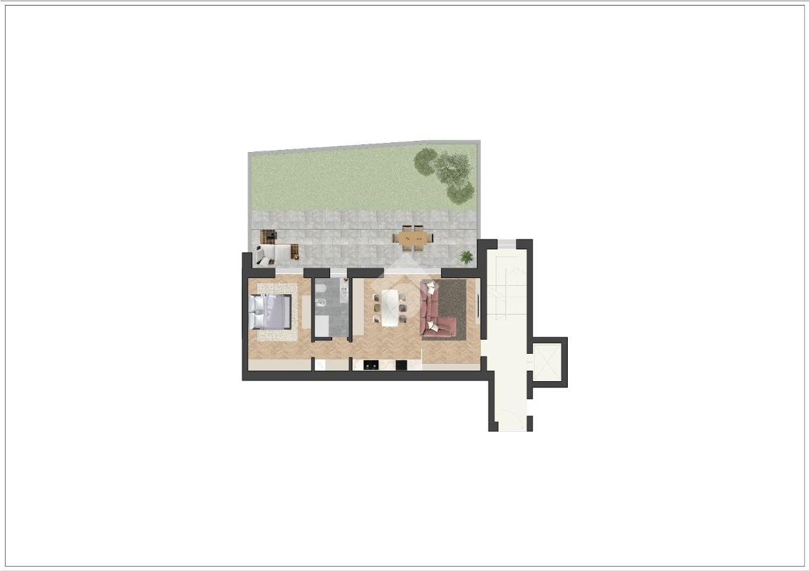 Tutti gli appartamenti sono dotati di ampi spazi esterni vivibili, con terrazze o giardini privati che regalano una suggestiva vista sui vigneti della Franciacorta, per vivere ogni giorno un'esperienza di tranquillità e bellezza.